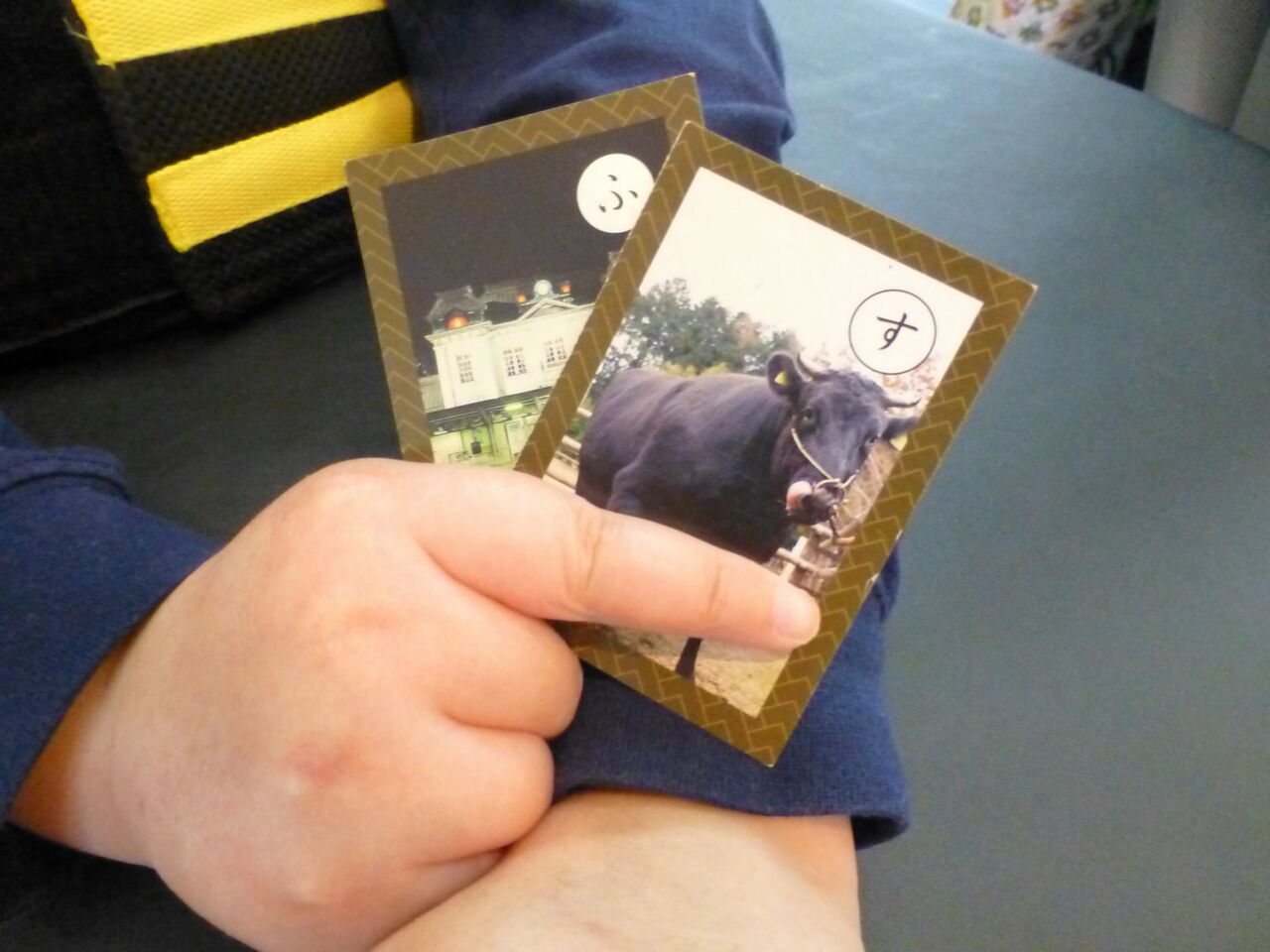 20205月16 北九州市ふるさとかるた(幸神生活介護) レクリエーションの時間に「北九州市ふるさとかるた」という年代物のかるたをしました(((o(゚▽゚)o)))このかるたを使った大会もあるそうです。私たちが生活している北九州市について学びながら、かるたの札を取り合いましたo(゚∀゚o)