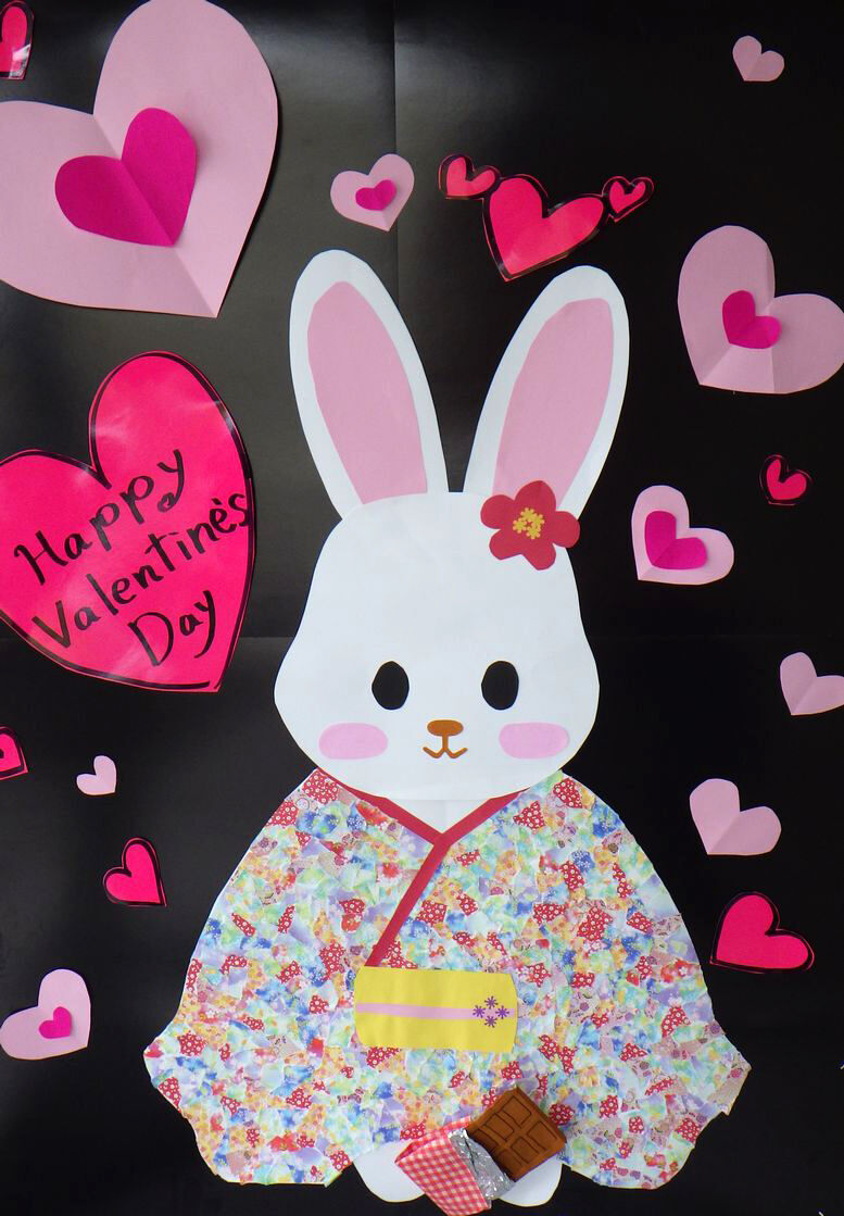 20232月14 バレンタインデー(幸神生活介護) 2月14日はバレンタインデーなので、正月に制作したうさぎの看板をバレンタイン仕様に変更しました( ´ ▽ ` )ノ良いものは加工して再利用する。ものは大切にしたいですね(*゚▽゚)ノ