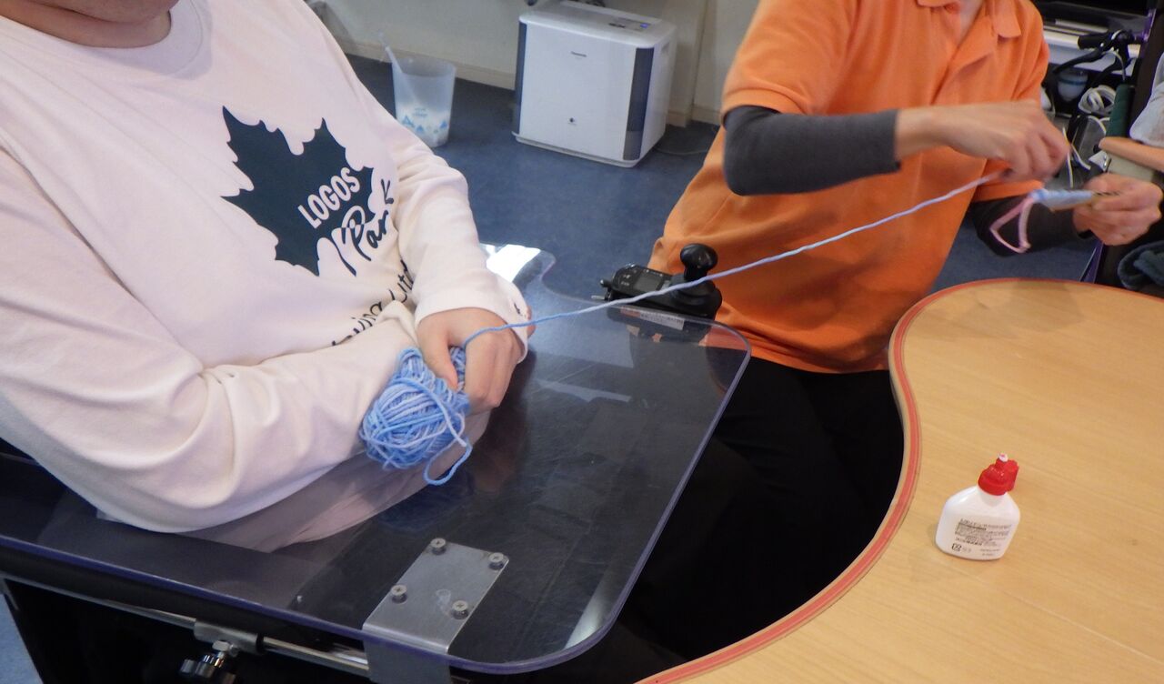 202511月20 早めにクリスマスの準備を(幸神生活介護) こんにちは、きらら幸神です11月ですが、クリスマス制作の準備を早めに進めております。段ボールでクリスマスツリーの型を作りそれに毛糸を巻いてビーズ等をつけて装飾しました様々な毛糸を組み合わせていろいろなタイプのクリスマスツリーが完成しました