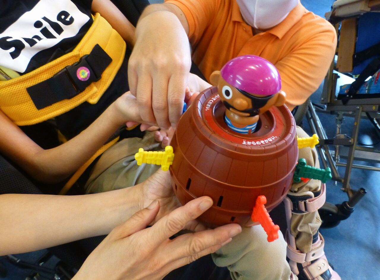 20209月10 黒ひげのゲームで遊ぶ(幸神生活介護) 今回のレクリエーションでは、「黒ひげ危機一発」で遊びました( ´ ▽ ` )ノ※危機「一髪」ではなく、危機「一発」です。タルにナイフを刺すと黒ひげが飛び出すゲーム。どこで飛び出すが分からないドキドキ感があり、飛び出したときには盛り上がります(((o(゚▽゚)o))) 「幸神」カテゴリの最新記事