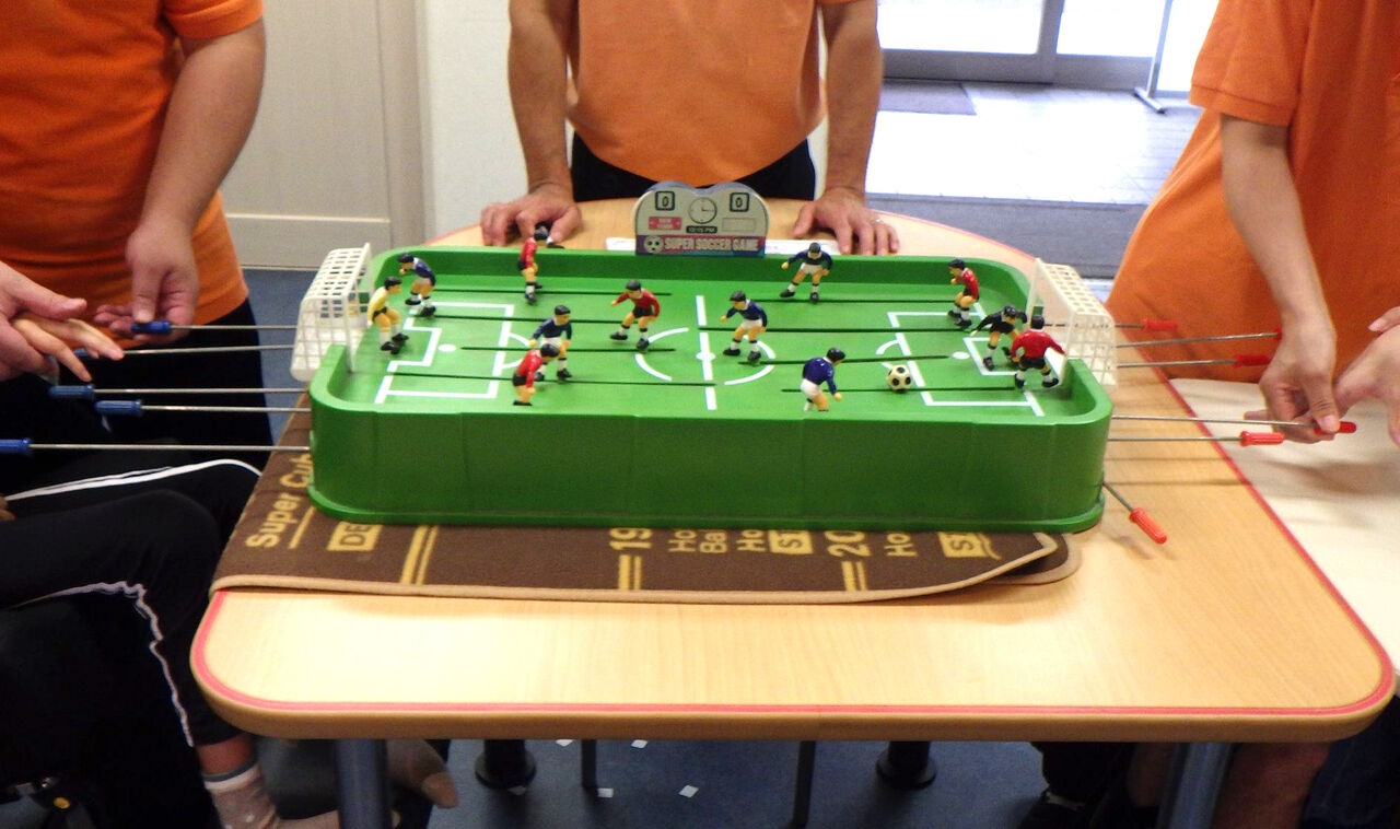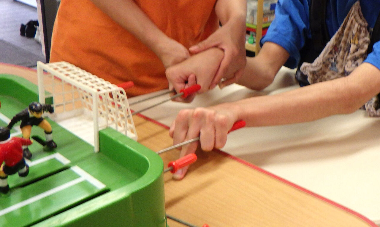 202310月11 懐かしのサッカー盤(幸神生活介護) 今回のレクリエーションは、サッカー盤で遊びました(=゚ω゚)ノどの棒を動かせばよいのかが分からず、適当に動かした結果、ボールが全く動かないこともありますが、ボールをうまく蹴りだせた時は盛り上がります(((o(*゚▽゚*)o))) 「幸神」カテゴリの最新記事